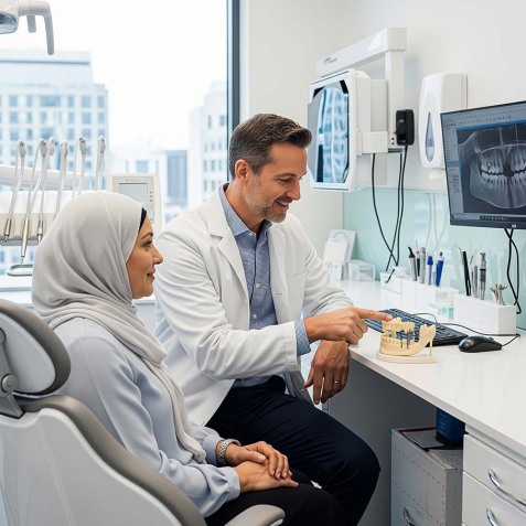 ۱. معاینه و مشاوره تخصصی: بررسی دقیق دهان و فک و ارائه بهترین طرح درمان متناسب با شرایط شما.